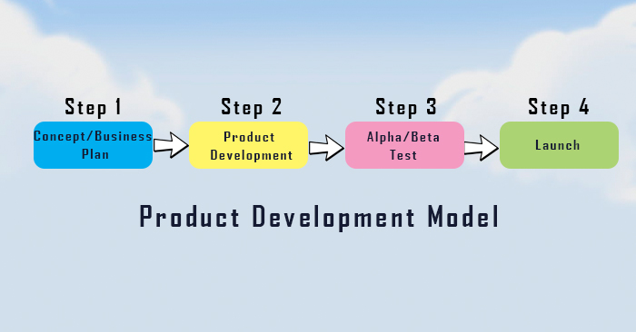 ဒုတိယတစ်ခုအနေနဲ့ကတော့ Product Development Model အကြောင်းရှင်းပြပေးသွားပါမယ်။ Product Development Model ဆိုတာကတော့ ဟိုးအရင်ခေတ်ကအသုံးပြုခဲ့တဲ့ product တွေထုတ်တဲ့နေရာမှာ အသုံးဝင်တဲ့ model/ method တစ်ခုဖြစ်ပါတယ်။ ထို Model မှာဆိုရင်တော့ Step ၄ ခုဖြင့် ဖွဲ့စည်းထားပါတယ်။ ပုံထဲမှာပြထားတဲ့အတိုင်း Business Plan ကိုတွေးတောတဲ့အဆင့် Step-1, Product ကို develop စလုပ်တဲ့ Step-2, Product ကို testing လုပ်တဲ့ Step-3 နှင့် နောက်ဆုံး product ကို ချပြ launch လုပ်တဲ့အဆင့် Step-4 အစရှိသည်တို့ပါဝင်ပါတယ်။