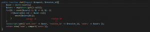 Function အထဲမှာပါတဲ့ auth_user.id နဲ့ receive_id က Laravel Controller ကနပေို့ထားတာပါ။