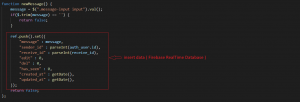 ပထမဦးဆုံးအနေနဲ့ Data Insert လုပ်တာအရင်ရေးပါမည်။UI ယူသုံးထားတဲ့အထဲမှာပါသည့် JavaScript newMessage function ကိုပဲယူသုံးထားပါတယ်။