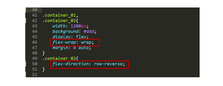 Flex-direction Coding ကိုတော့ အောက်ပါပုံအတိုင်း ရေးပေးရပါမယ်။