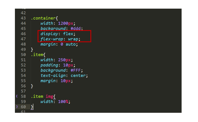 ပထမဦးဆုံး Flexbox ကို အသုံးပြုတော့မယ်ဆိုရင် Container (သို့မဟုတ်) Parent <div> မှာ display: flex; ကိုအရင် ရေးပေးမှ ကျန်တဲ့ properties တွေအလုပ်လုပ်မှာ ဖြစ်ပါတယ်။