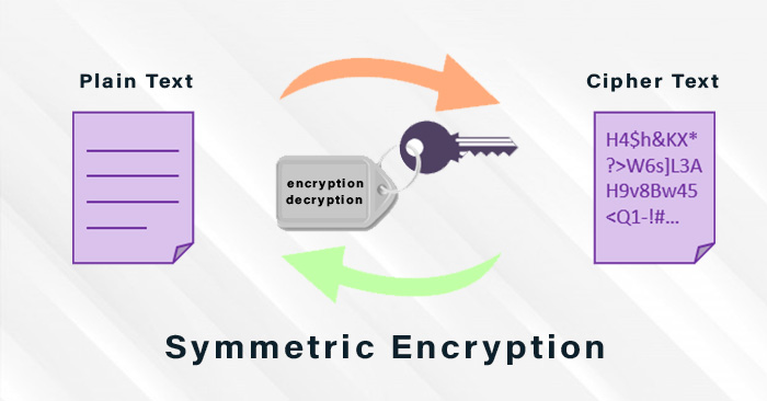Encryption အမျိုးအစား (၂) မျိုး ကတော့ Symmetric Encryption နဲ့ Asymmetric Encryption တို့ဖြစ်ပါတယ်။ ပထမတစ်ခုဖြစ်တဲ့ Symmetric Encryption အကြောင်းကိုအရင်ရှင်းပြပေးချင်ပါတယ်။ system က data တွေကို Encrypt လုပ်ရင် plain text ကနေ cipher text ကိုပြောင်းတဲ့အခါ secret key တစ်ခုတည်းကိုသုံးပြီး Encrypt လုပ်လိုက်တဲ့ process ကို Symmetric Encryption လို့ခေါ်ဆိုခြင်းဖြစ်ပါတယ်။