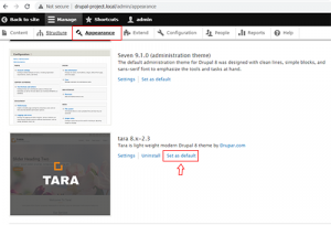 8) ကဲ ဒါဆိုရင် theme ရွေးလိုက်ကြရအောင်။ ကိုယ်လိုချင်တဲ့ theme ကို https://www.drupal.org/project/project_theme ကနေ IMG_08 မှာပြထားတဲ့ အတိုင်း ကိုယ်အသုံးပြုမယ့် drupal version အတိုင်း theme တွေကို ရှာလို့ရပါတယ်။