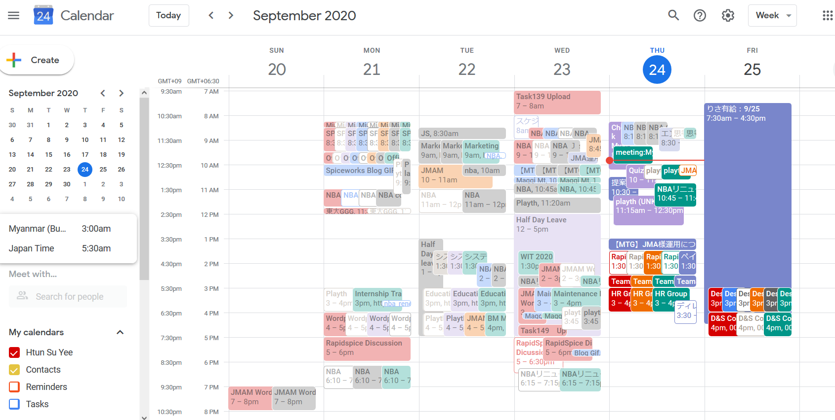 Spiceworks Myanmar Company ၏နေ့စဉ်လုပ်ငန်းဆောင်တာများတွင် မဖြစ်မနေအသုံးပြုရသော နောက်ထပ် Tool ကတော့ Google Calendar ဖြစ်ပါတယ်။ Google Calendar ဆိုတာက Spiceworks Myanmar မှ Member များအနေဖြင့် မိမိတို့တက်ရောက်ရမည့် Meeting Time များကို စနစ်တကျစီမံခန့်ခွဲပြုလုပ်ရန် နှင့် Member များ Leave ယူသည့်အခာ Spiceworks Myanmar မှ member များသာမက Spiceworks Japan မှ member များပါ သိရှိစေရန် ရည်ရွယ်၍ အသုံးပြုကြခြင်းဖြစ်ပါတယ်။ ထို့အပြင် ရုံးကိစ္စနှင့်ပတ်သက်၍ အပြင်သို့သွားလျှင်လည်း ဘယ်အချိန်ကနေဘယ်အချိန်အထိသွားမည်၊ ဘာအကြောင်းအရာအတွက်သွားမည် ဆိုတာကို ISMM အပြင် Google Calendar မှာပါဖြည့်စွက်ပေးရပါတယ်။ ထို့ကြောင့် Google Calendar ဖြည့်စွက်အသုံးပြုနည်းကိုလည်း HR အဖွဲ့မှ ရှင်းပြပေးပါတယ်ရှင့်။