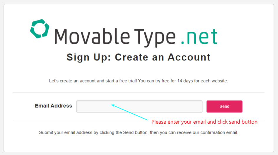 Sign Up page ကိုရောက်ရင် အောက်ပါပုံမှာမြင်ရတဲ့အတိုင်း မိမိအသုံးပြုမည့် email address ကိုရိုက်ထည့်ပါ။ send button ကိုနှိပ်ပါ။