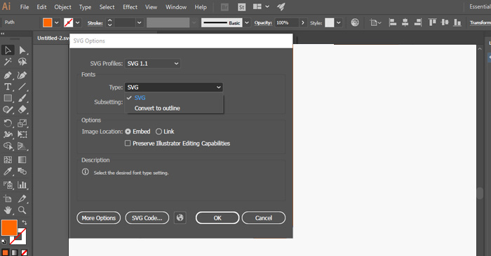 To get the svg code – click ” SVG Code “ in the SVG options dialog (or) open your svg image in the text editor.