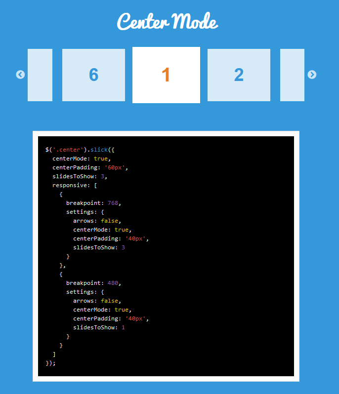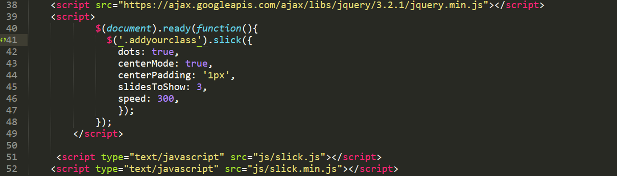 Center Mode slider Demo ကို သုံးချင်ရင်တော့ Slick slider မှ ပေးထားသော Js code ကို ယူပြီး အောက်ဖော်ပြပါ ပုံအတိုင်း မိမိ ၏ code ထဲသို့ ရေးပေးရပါမယ်။