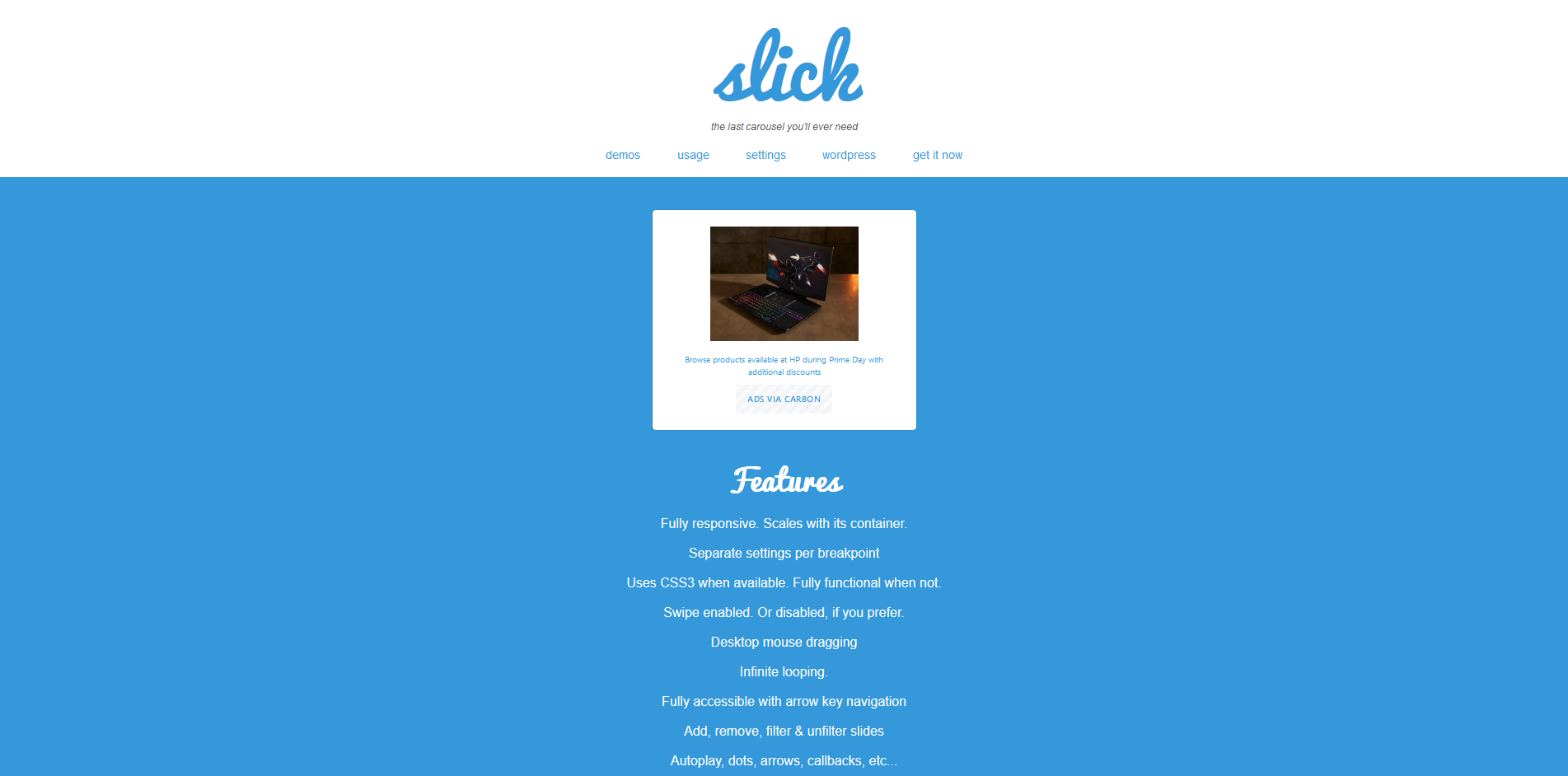 Slick slider ကို အသုံးပြုမယ်ဆိုရင် ဒီ ( https://kenwheeler.github.io/slick/ ) လင့်ခ် ထဲကို အရင်ဦးဆုံး ဝင်ရပါမယ်။Data file ကို “get it now” ကနေ Download လုပ်ပါ။
