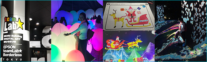 TeamLab – borderless ဆိုတဲ့အတိုင်းပါပဲ TeamLab တစ်ခုလုံး ဘယ်နေရာကြည့်ကြည့် Artworks တွေနဲ့ဖုံးလွှမ်းနေတယ်။ Artworks တွေက roomတစ်ခုနဲ့တစ်ခုမတူဘူး။ ပြီးတော့ တစ်ချို့ artworks တွေက ထိလိုက်ရင် animate ဖြစ်တယ်။ LED Ballon တွေက ထိလိုက်ရင် အသံထွက်ပြီး အရောင်ပြောင်းသွားတယ်။ နောက်တစ်ခုက ပုံလေးတွေကို ကိုယ်တိုင်ဆေးရောင်ခြယ်ပြီး scan လုပ်လိုက်တာနဲ့ အဲဒီ ပုံတွေက artworks တွေနဲ့အတူနံရံပေါ်မှာ animate ဖြစ်နေတာကိုလည်းတွေ့ရတယ်။ 😮😮😮 https://borderless.teamlab.art/